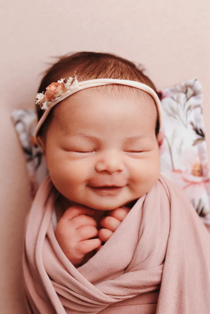 Lors de la séance, je propose également l’emmaillotage, une technique qui consiste à envelopper délicatement bébé. Cela lui rappelle les sensations du ventre maternel, le rassure et permet d’obtenir des images paisibles, tout en respectant son confort et sa sécurité.