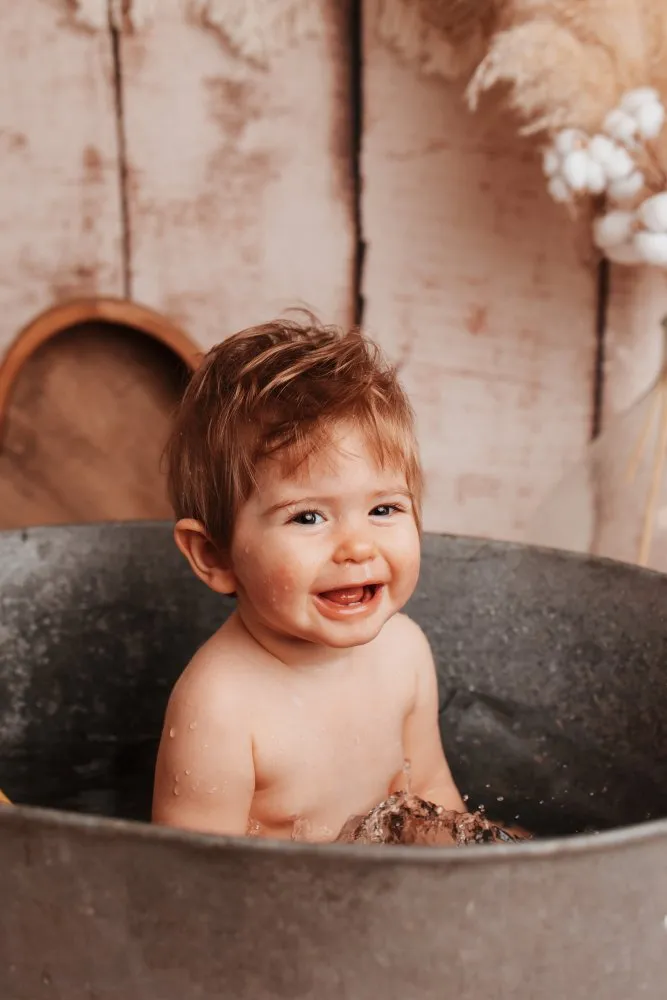 TAILS PHOTOGRAPHIE votre photographe professionnelle vous propose un shooting photo anniversaire avec bain bébé en studio à Besançon.