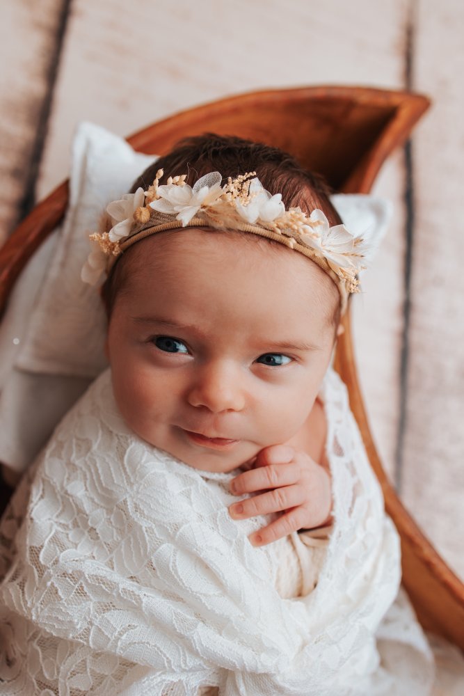 Tails Photographie - Céline Jean votre photographe professionnelle vous propose un shooting photo nouveau né avec enmmaillotage et photos de famille en studio à Besançon.
