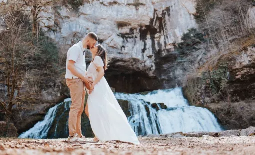 Offrez-vous un moment magique et inoubliable avec un shooting grossesse en pleine nature à la Source du Lison en Franche-Comté.