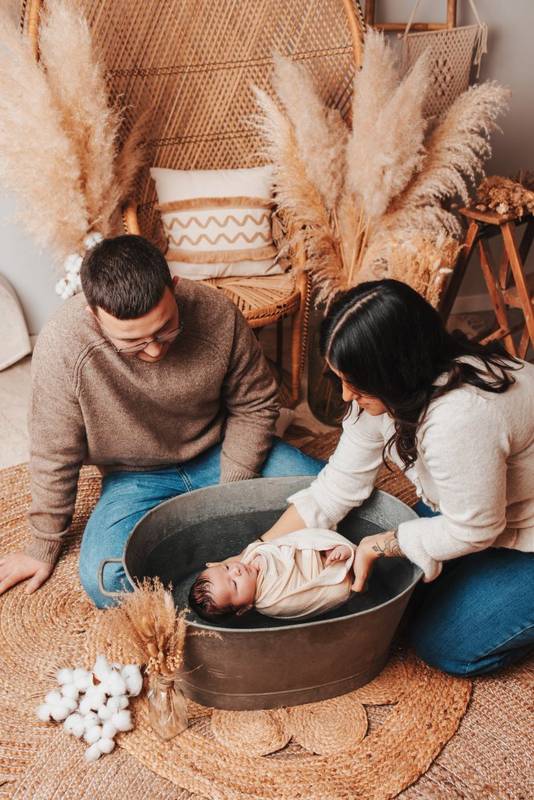 Découvrez la séance photo bain bébé emmailloté, réalisée dans un décor bohème et chaleureux. Vous baignerez bébé dans une jolie bassine vintage, vous offrirez à votre bébé un moment tendre et apaisant, que j’immortaliserai à travers des images naturelles et pleines de douceur.
