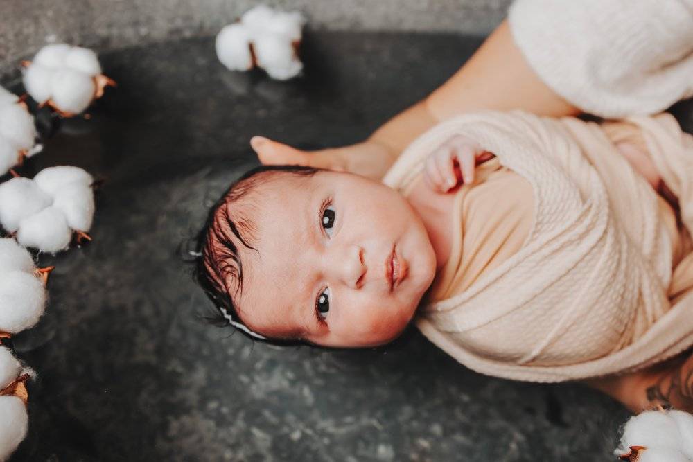 TAILS PHOTOGRAPHIE - Céline Jean votre photographe professionnelle vous propose de réaliser une séance photo bain bébé emmailloté à Besançon.