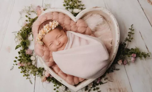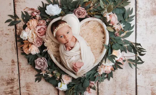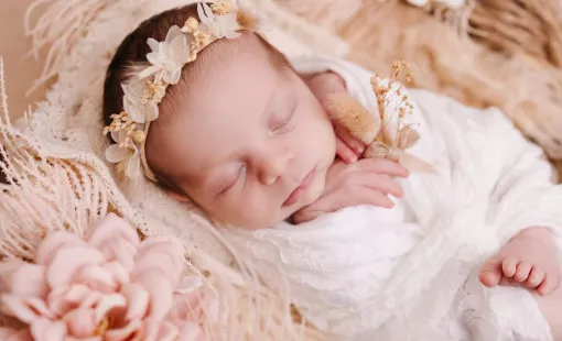 Shooting photo nouveau né fleuri à Besançon