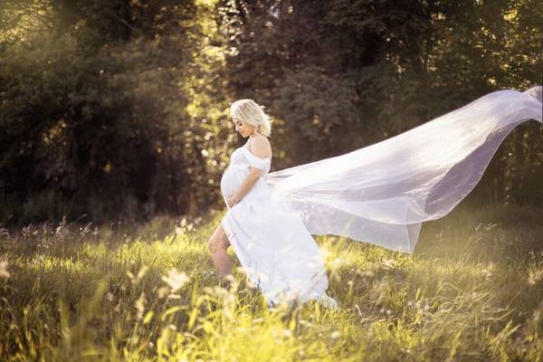 Sandrine enfile cette jolie robe spéciale shooting grossesse, qui lui allait à ravir!